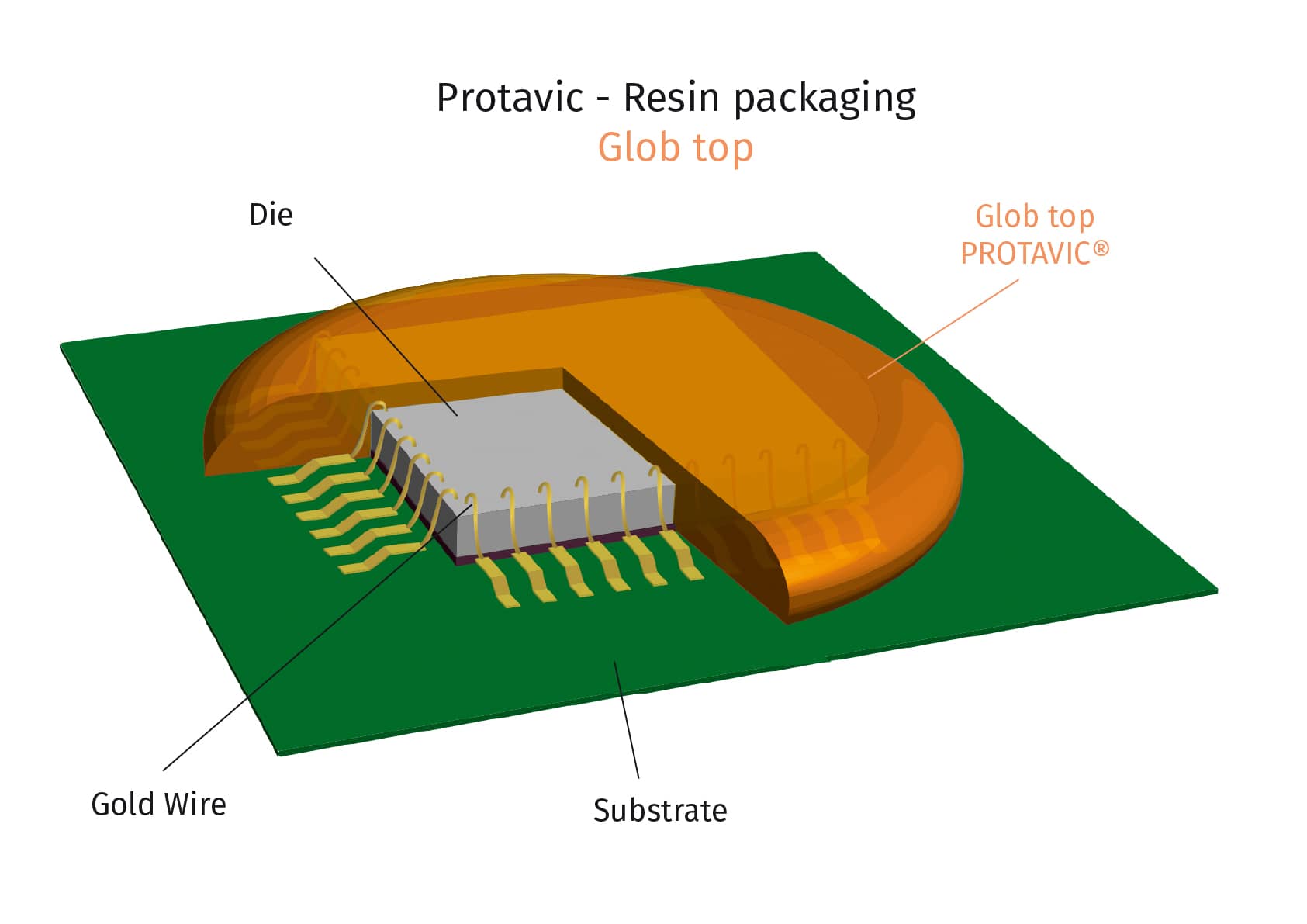The Dam & Fill combination allows for coating a specific area within a set of components. The PROTAVIC line includes products with high glass transition temperature and low coefficient of thermal expansion.